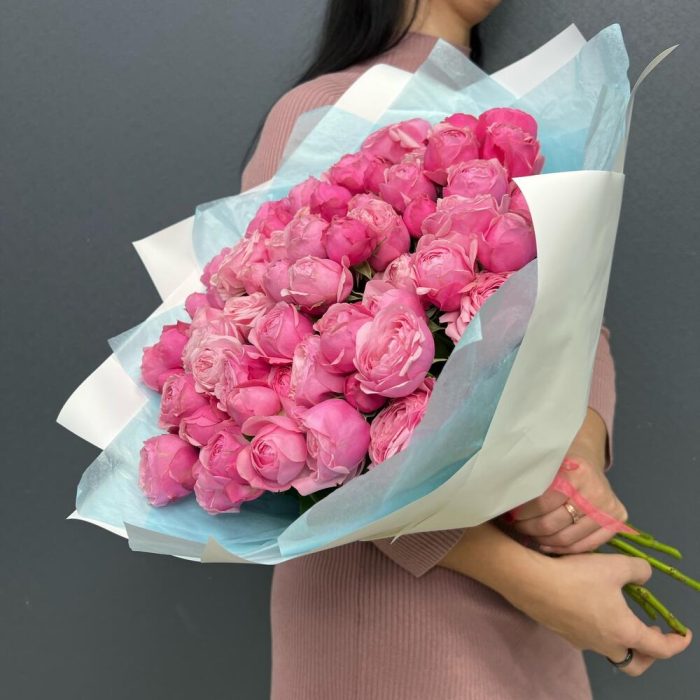 Лента – 2 шт.Тишью – 2 шт.Пленка матовая – 2 шт.роза сильва пинк пионовидная – 15 шт.