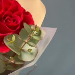 Эвкалипт – 3 шт.Роза одноголовая – 7 шт.Лента атласная – 1 шт.Упаковка дизайнерская – 2 шт.