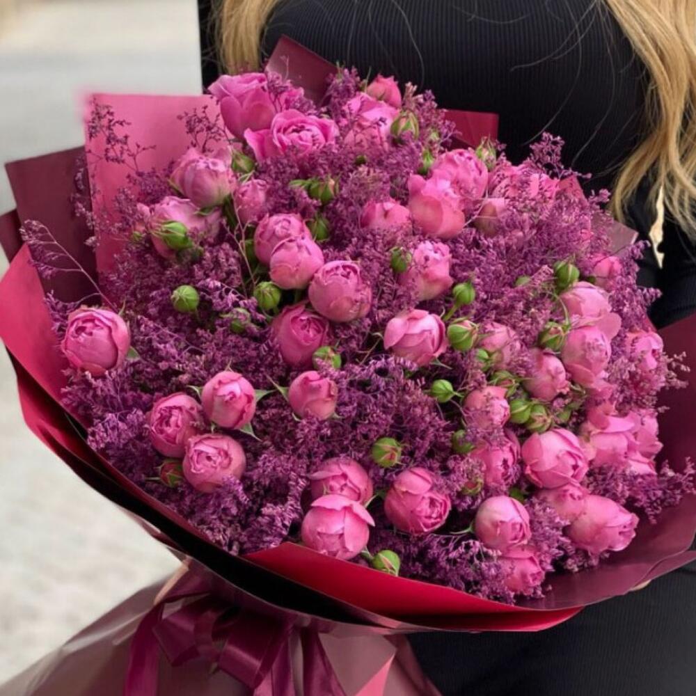Кустовые розы, Лизиантусы, Розы, Сухоцвет