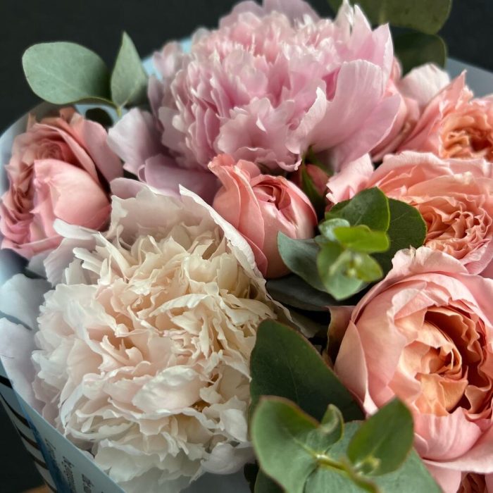 Букет с пионами и эвкалиптом
