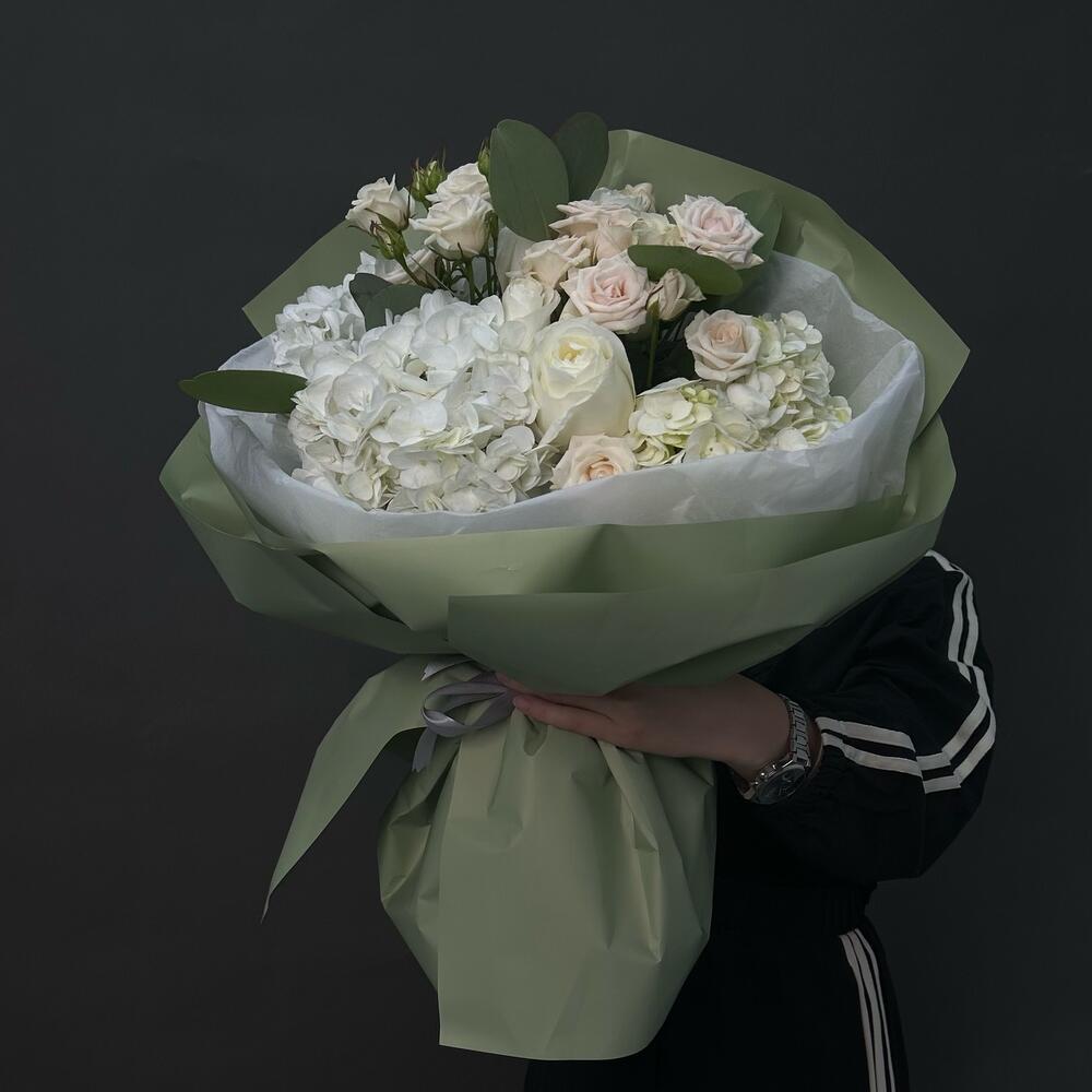 Гвоздики, Кустовые розы, Лизиантусы, Пионовидные розы, Розы