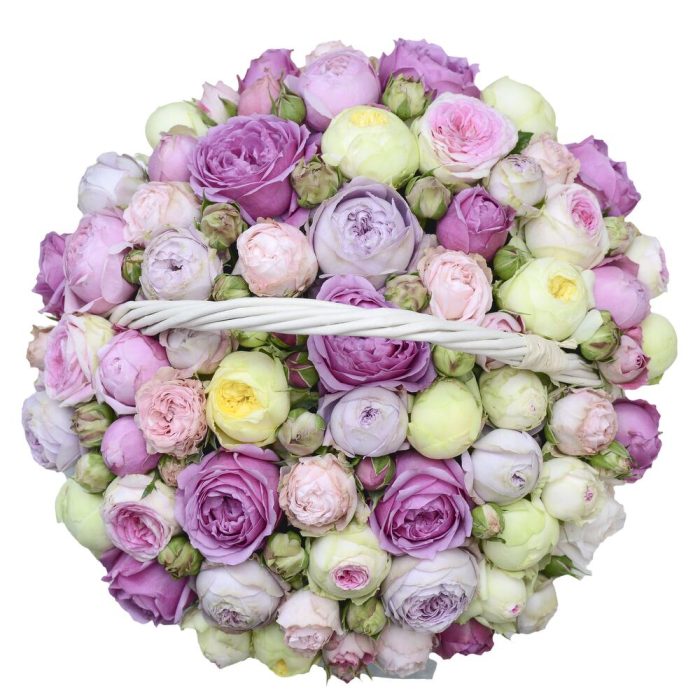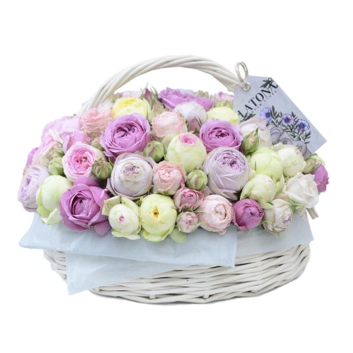 Твой сад - корзина с ранункулюсами и пионовидными розами