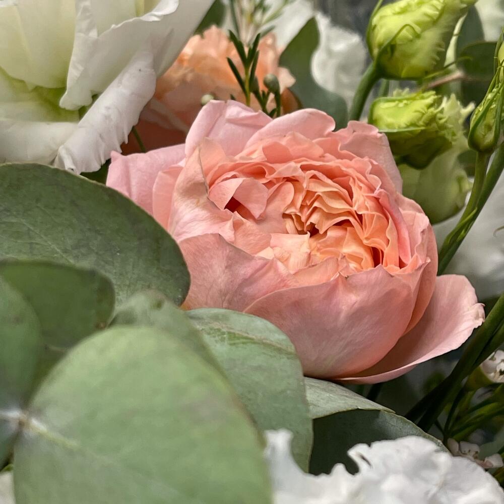 “Эвкалиптическая роскошь” гортензия и пионовидная кустовая роза