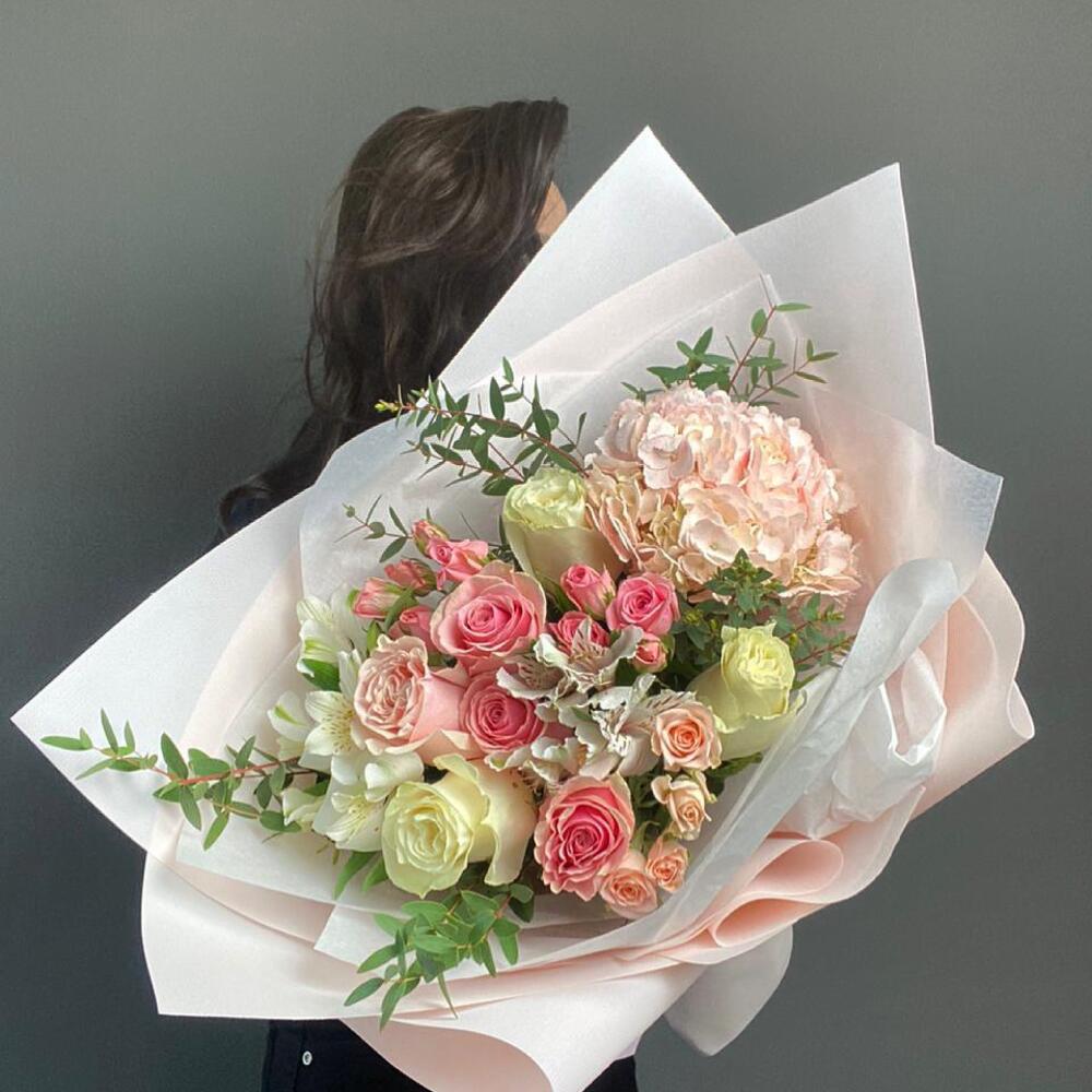 Гвоздики, Кустовые розы, Пионовидные розы, Розы