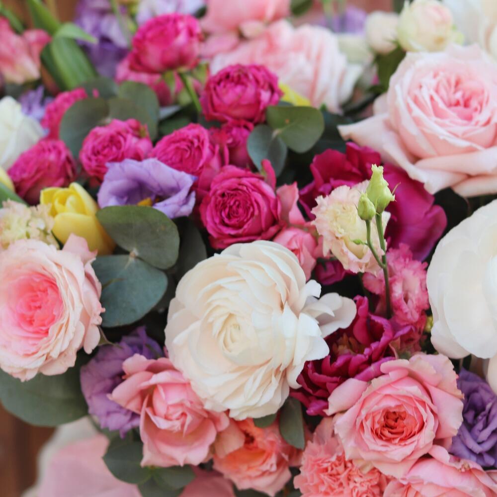 Нежная, чувственная и воздушная композиция, выполненная из свежих элитных и редких цветов: садовых и пионовидных роз, маттиолы, лизиантуса, ранункулюсов и многих других не менее интересных видов.Такая композиция точно поразит яркую и энергичную получательницу, и будет долго радовать её.К композиции прилагается открытка с вашими пожеланиями, инструкция по уходу за цветами и приятный комплимент от нашего магазина – шоколадка.Мы также будем рады отправить вместе с композицией конфеты, шоколад ручной работы или б/а вино по вашим пожеланиям, просто напишите нам в личные сообщения. Заказывая нашу композицию, Вы всегда получите исключительный сервис и заботу о клиенте