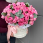 Коробка шляпная – 1 шт. Пионовидная кустовая роза – 11 шт. Губка флористическая – 1 шт.