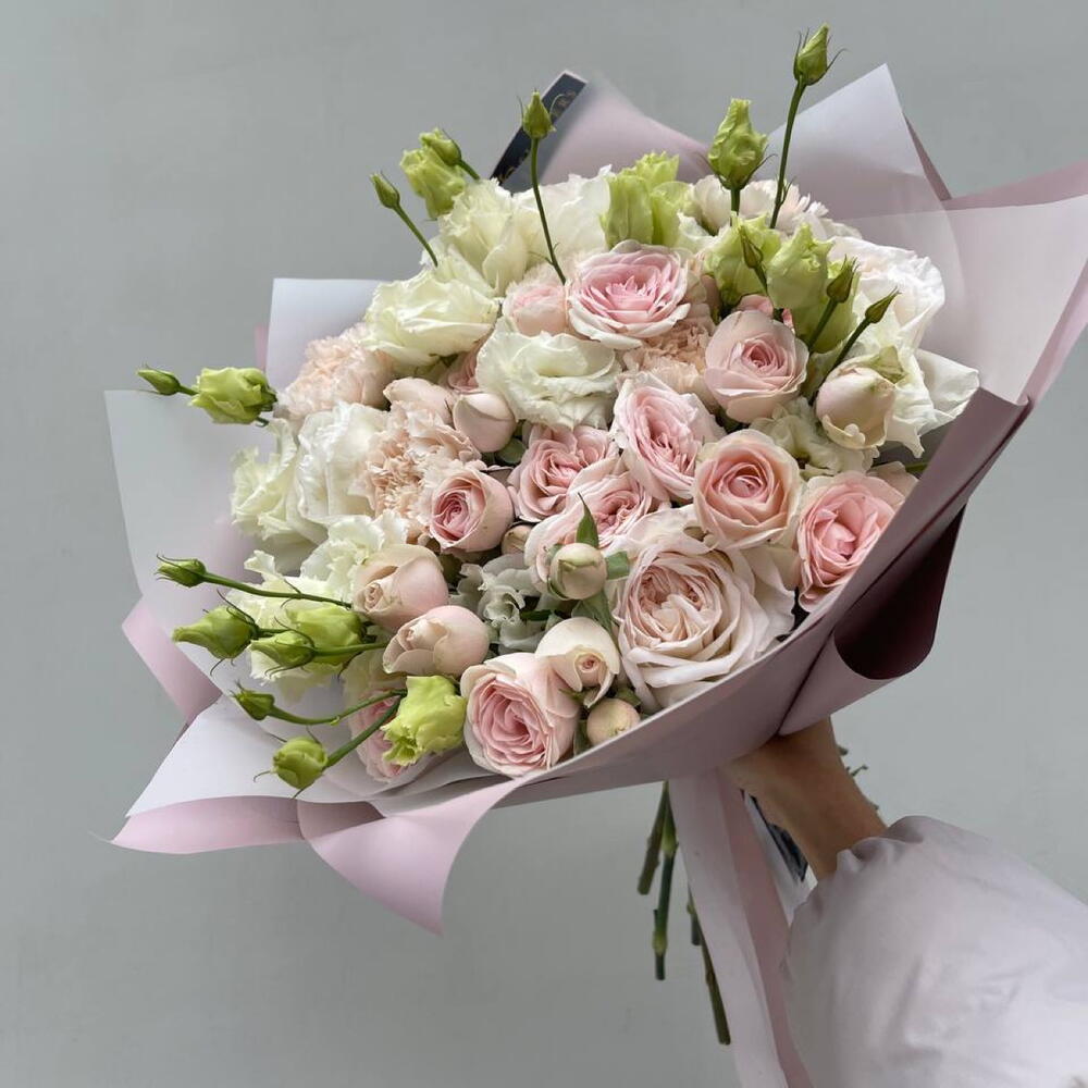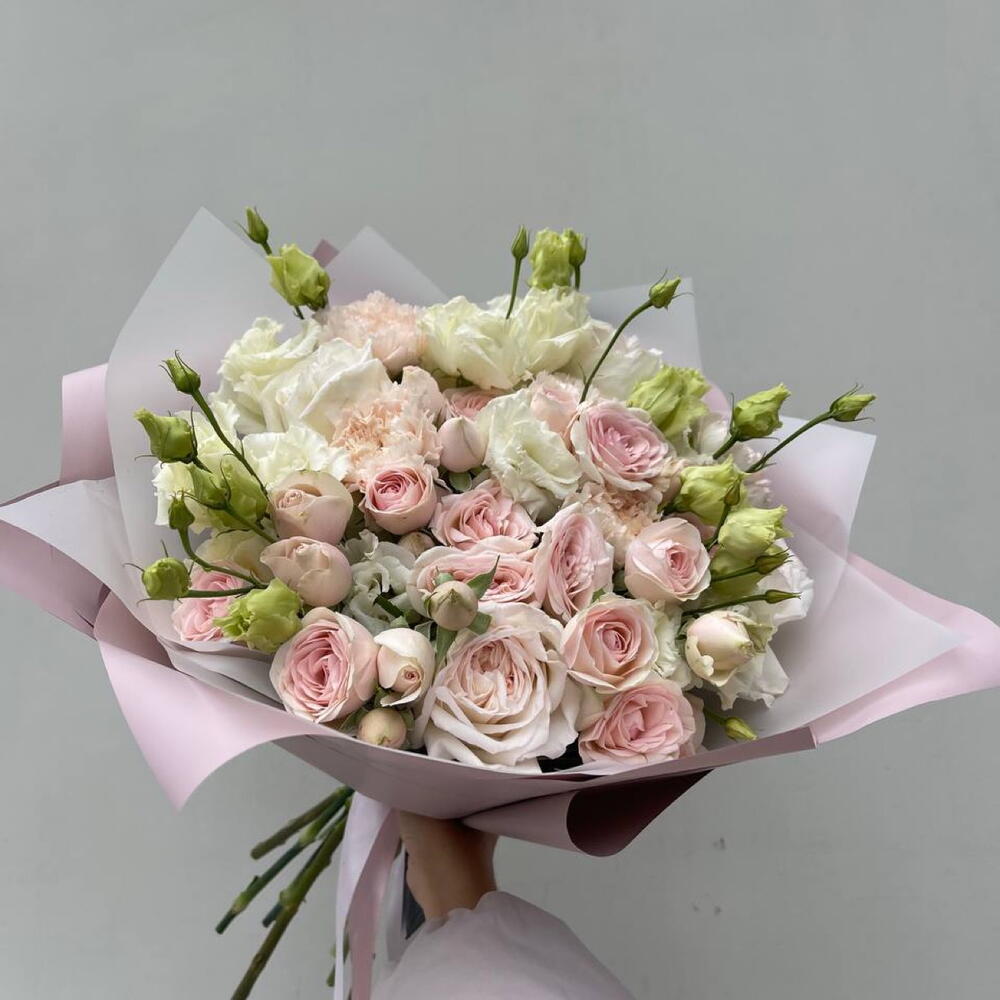Гвоздики, Кустовые розы, Пионовидные розы, Розы