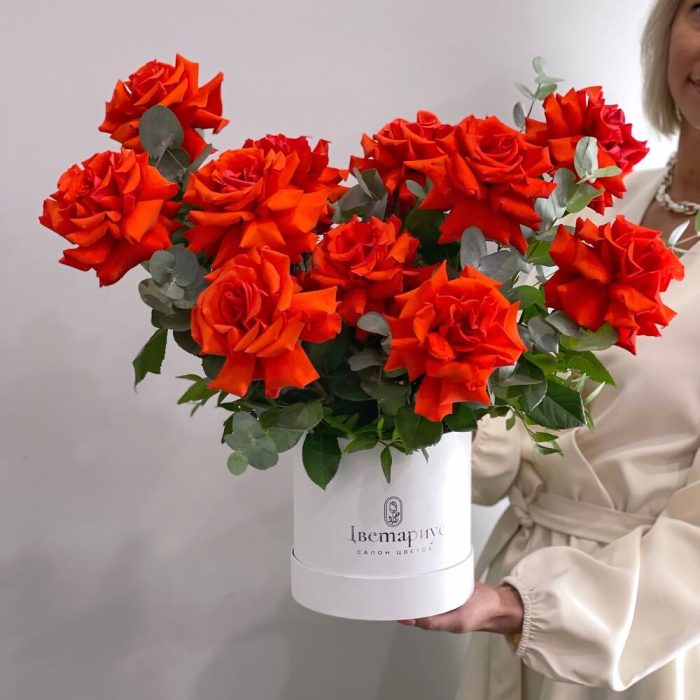 Французская роза – 11 шт.Эвкалипт – 3 шт.Фисташка – 3 шт.Шляпная коробка – 1 шт.