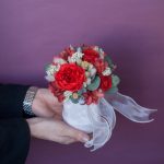 Роза стабилизированная – 3 шт.Эвкалипт стабилизированный – 9 шт.гортензия стабилизированная – 7 шт.озотамнус стабилизированный – 7 шт.Фаларис – 13 шт.Лагурус – 15 шт.