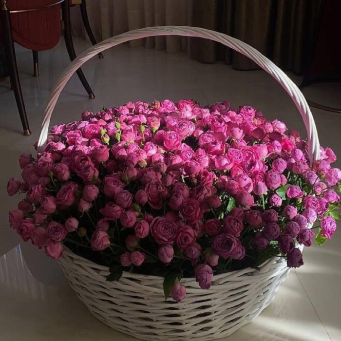 Корзина плетеная – 1 шт. Пионовидная кустовая роза – 151 шт.