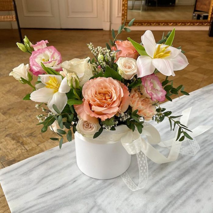 “В твоих глазах”: нежная шляпная коробка с французскими розами
