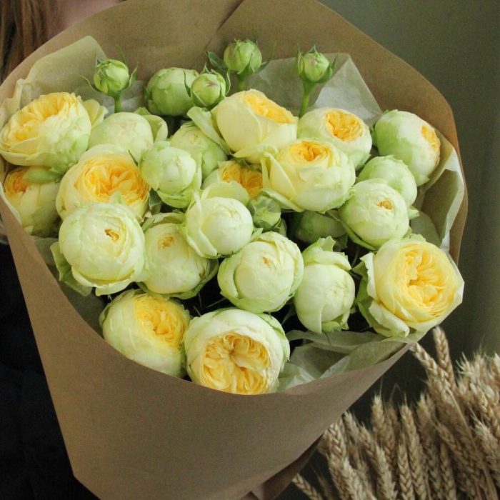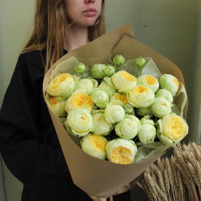 Роза кустовая пионовидная – 9 шт.Упаковка крафт – 1 шт.