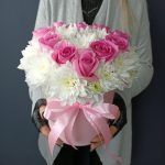 Любимой сердце из розы и хризантемы
