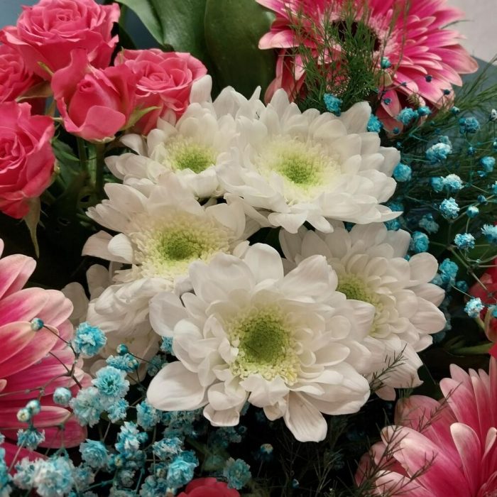 Категорий: Герберы, Гипсофила, Кустовые розы, Розы, Хризантемы
