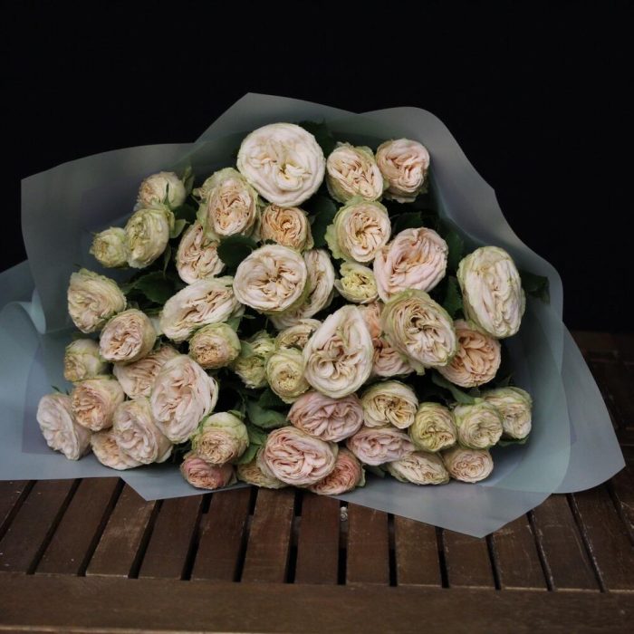 Персиковый букет с пионовидными кустовыми розами 4