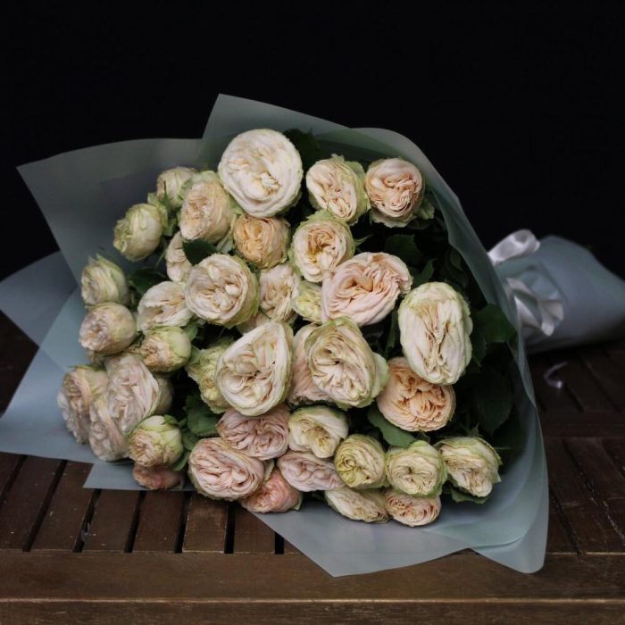трендсеттер роза кустовая – 9 шт.Пленка матовая – 2 шт.Лента атласная – 1 шт.
