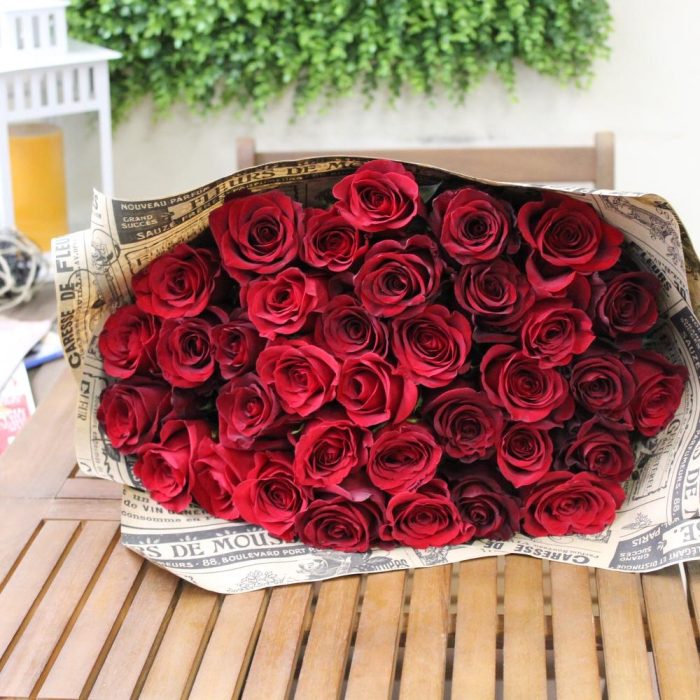 Роза Эквадор Премиум – 35 шт.Крафт упаковка – 2 шт.Сердце – 1 шт.