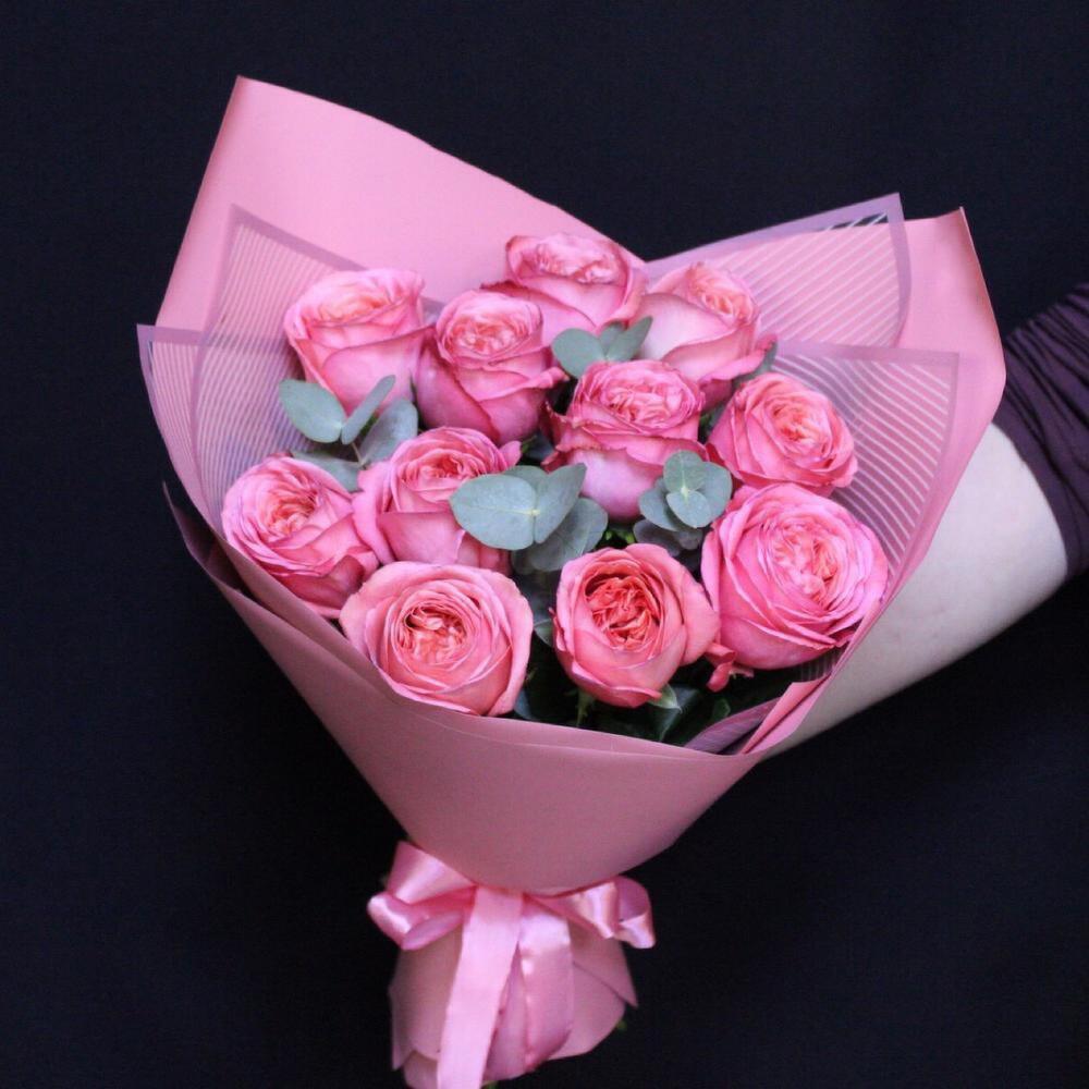 mono bouquet 68 из 11 роз сорта pink expression с эвкалиптом