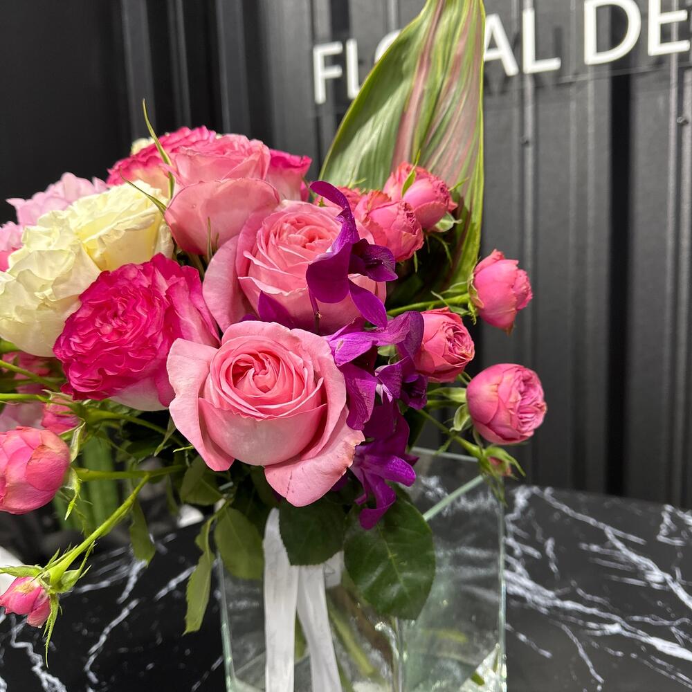 Гвоздики, Кустовые розы, Пионовидные розы, Розы