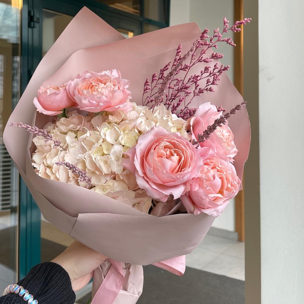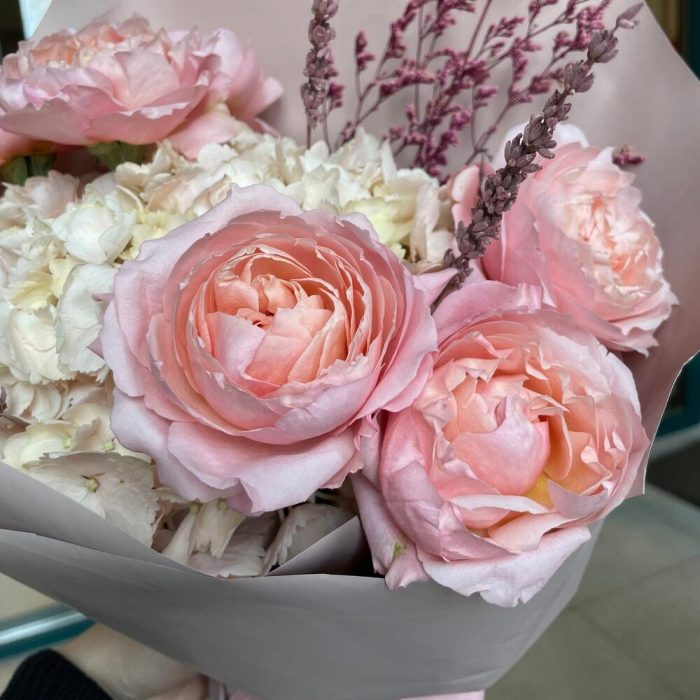 Гвоздики, Кустовые розы, Пионовидные розы, Розы