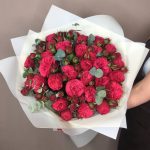 Лента – 1 шт.Эвкалипт – 4 шт.Пионовидная роза – 35 шт.Оформление – 1 шт.