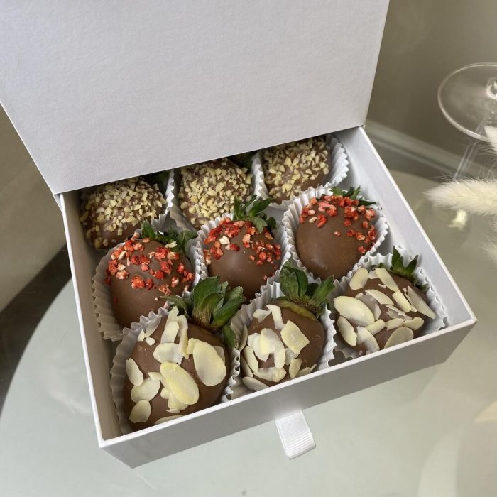 Роза – 15 шт.Клубника в шоколаде – 9 шт.