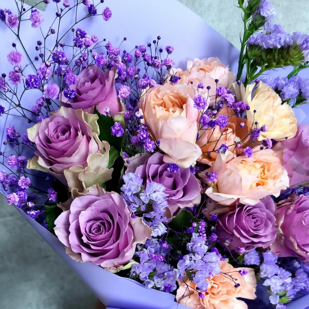 Гвоздики, Кустовые розы, Лизиантусы, Пионовидные розы, Розы