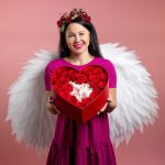 Сердце из 25 красных роз с конфетами