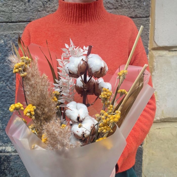 Хлопок – 1 шт.лонас – 1 шт.Рускус крашенный – 1 шт.кортадерия натуральная – 2 шт.Упаковка дизайнерская – 1 шт.