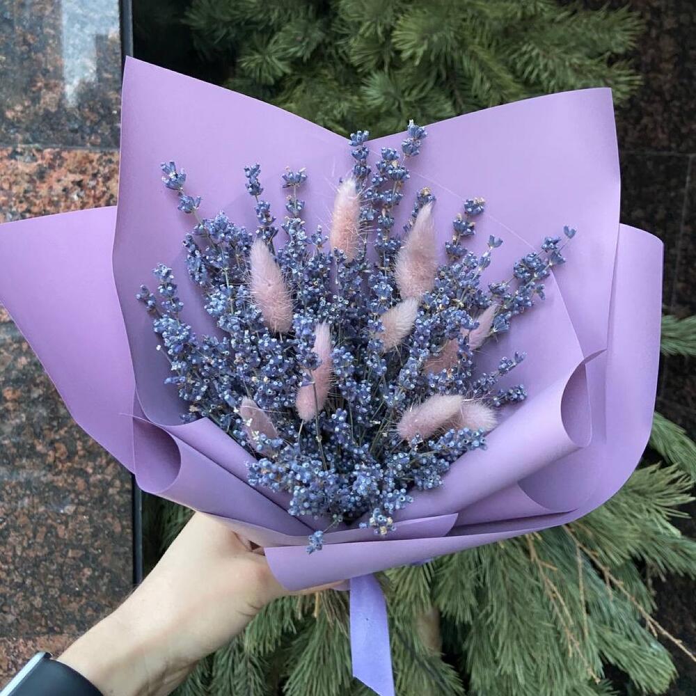 Упаковка – 1 шт.Лента атласная – 1 шт.Лаванда пучок – 1 шт.Лагурус (сухоцвет) – 10 шт.