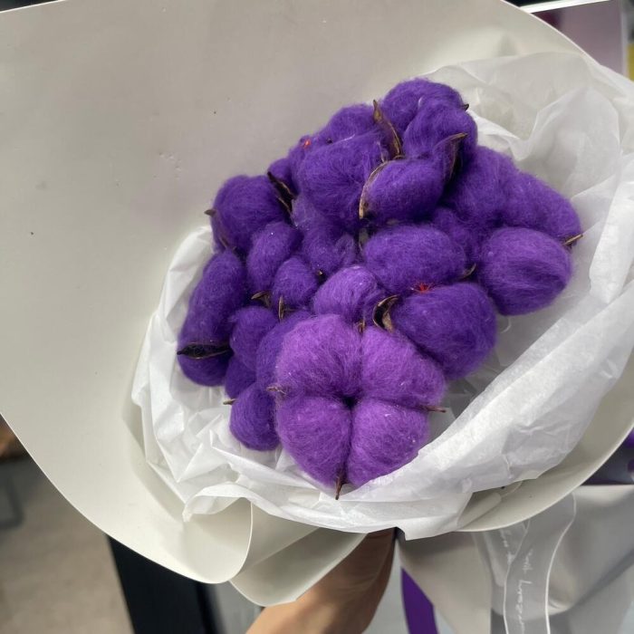 Хлопок – самое лучший подарок, он не завянет, не засохнет и не осыпится! Такой букет будет радовать вас годами)