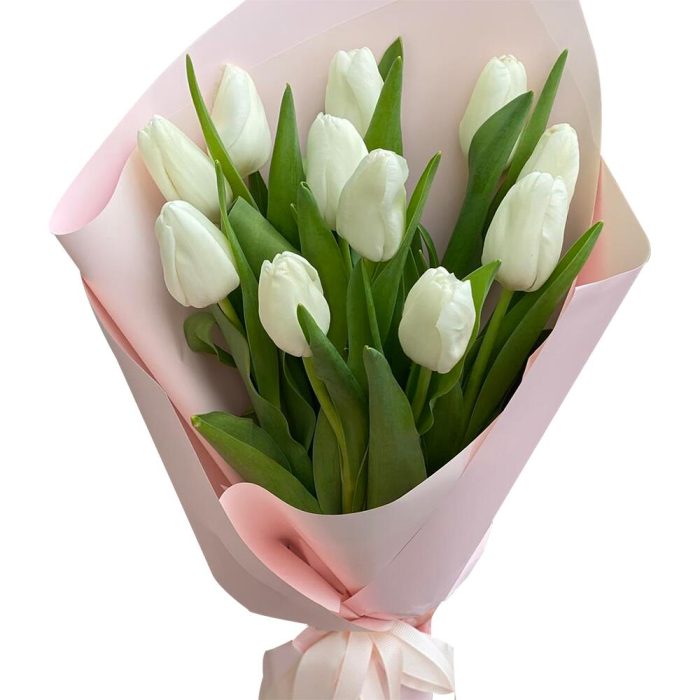 Класичний монобукет з 11 білих тюльпанів