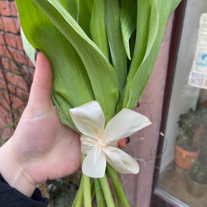 Тюльпан пионовидный – 9 шт.Лента атласная – 1 шт.