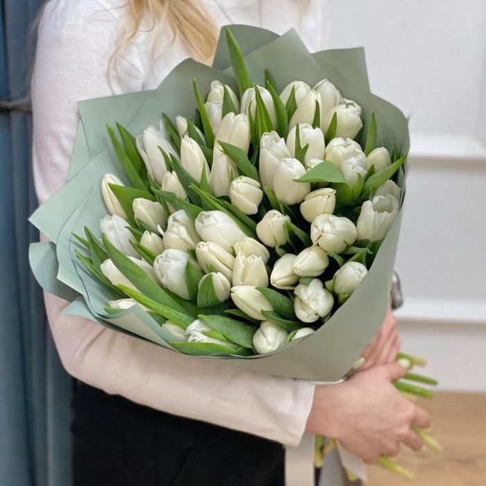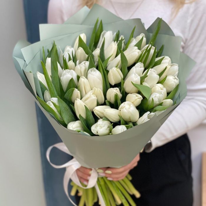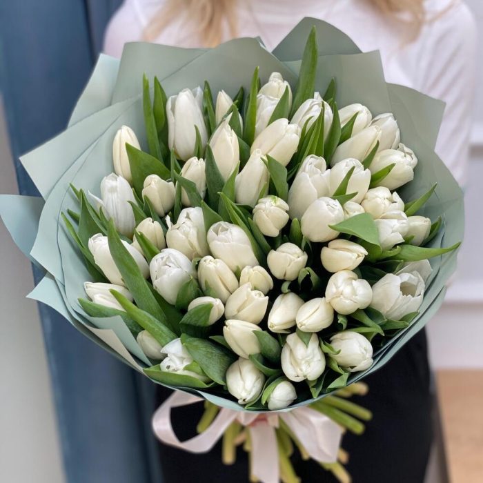 Букет белых тюльпанов 51 шт – «Рай на двоих»