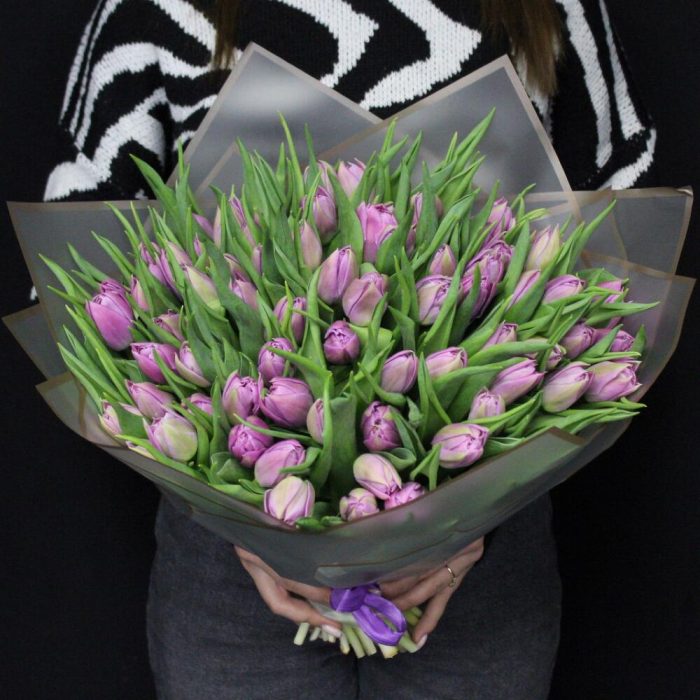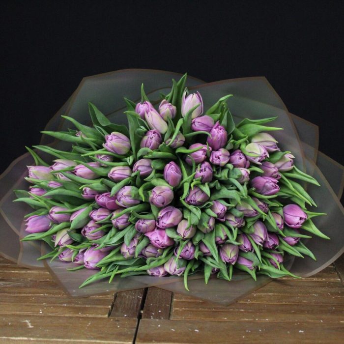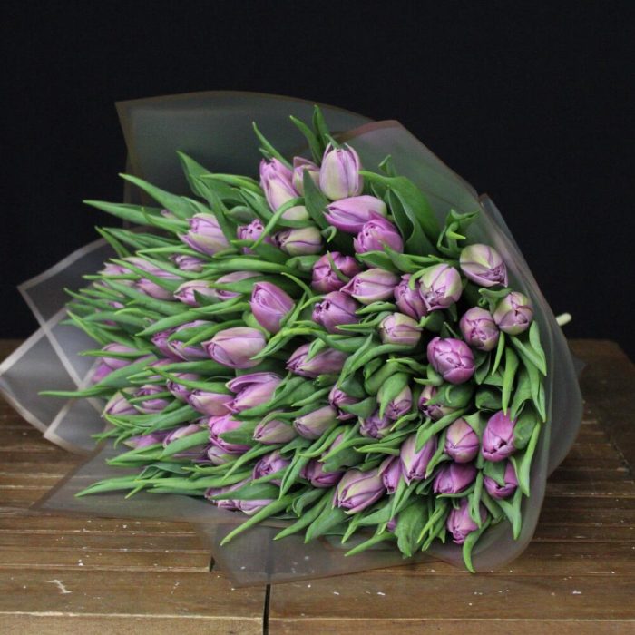 Тюльпан пионовидный дабл прайс – 75 шт.Пленка матовая – 3 шт.Лента атласная – 1 шт.