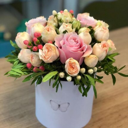 Цветы в коробке в красивом розовом цвете на день рождения, маме, сестре, подруге, без повода